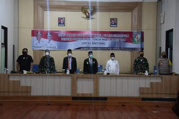Pematangraya, BS-Bupati Simalungun Radiapoh Hasiholan Sinaga SH dan Wakil Bupati Simalungun H Zonni Waldi (RHS-ZW) melakukan temu ramah lintas sektoral di balai Harungguan Djabantan Damanik kantor Bupati Simalungun, Rabu (28/4/2021).