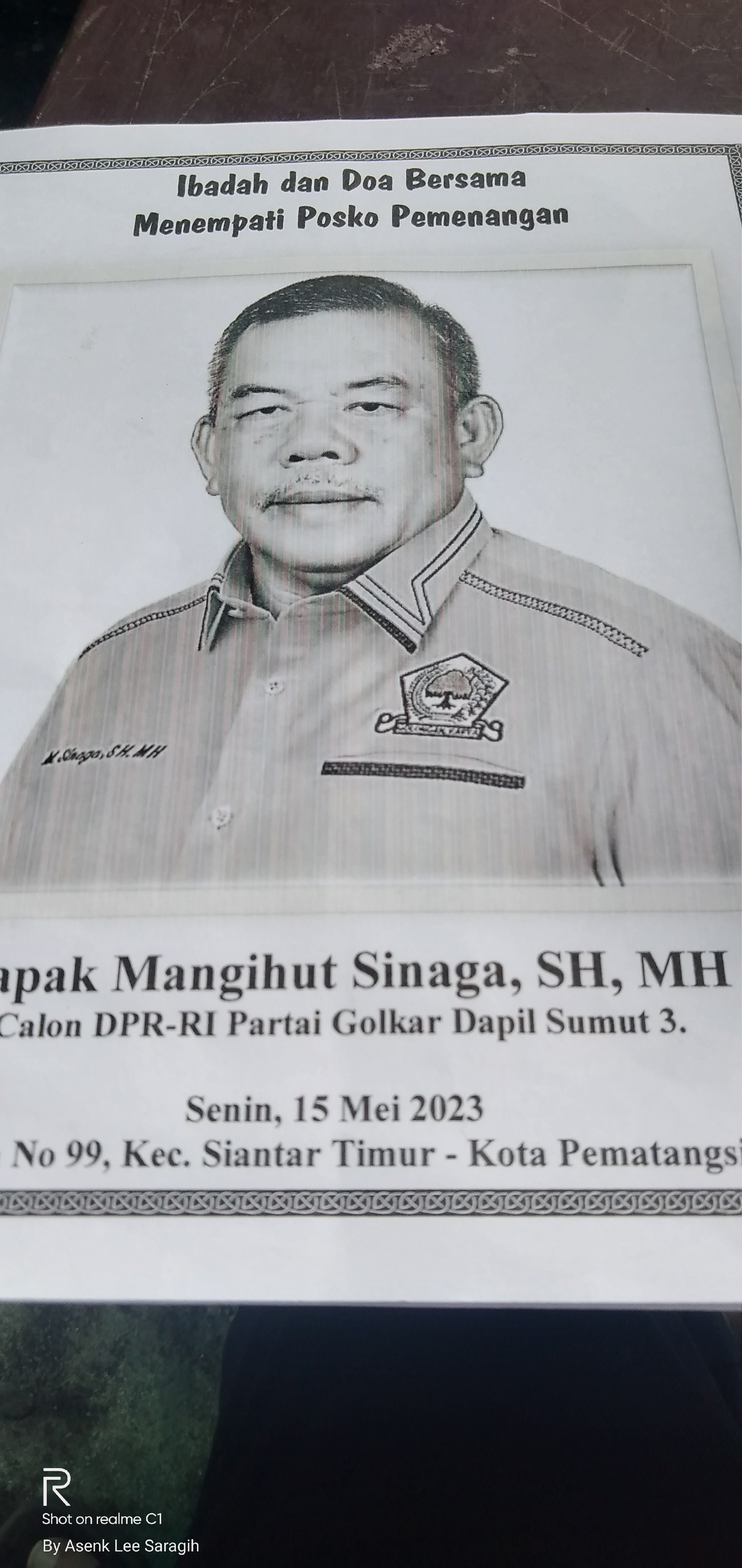 Pematangsiantar-Bakal calon legislatif DPR RI Partai Golkar Daerah Pemilihan (Dapil) Sumatera Utara III Mangihut Sinaga SH MH resmikan Posko Pemenangan di Jalan Asahan (Sangnaualuh) No 99, Kota Pematangsiantar dilaksanakan, Senin 15 Mei 2023. Hadir pada peresmian ini sekitar 200 orang perwakilan tim pemenangan dari tim Kabupaten Simalungun, tim Kota Pematangsiantar, Kabupaten Asahan dan Kabupaten Batubara.